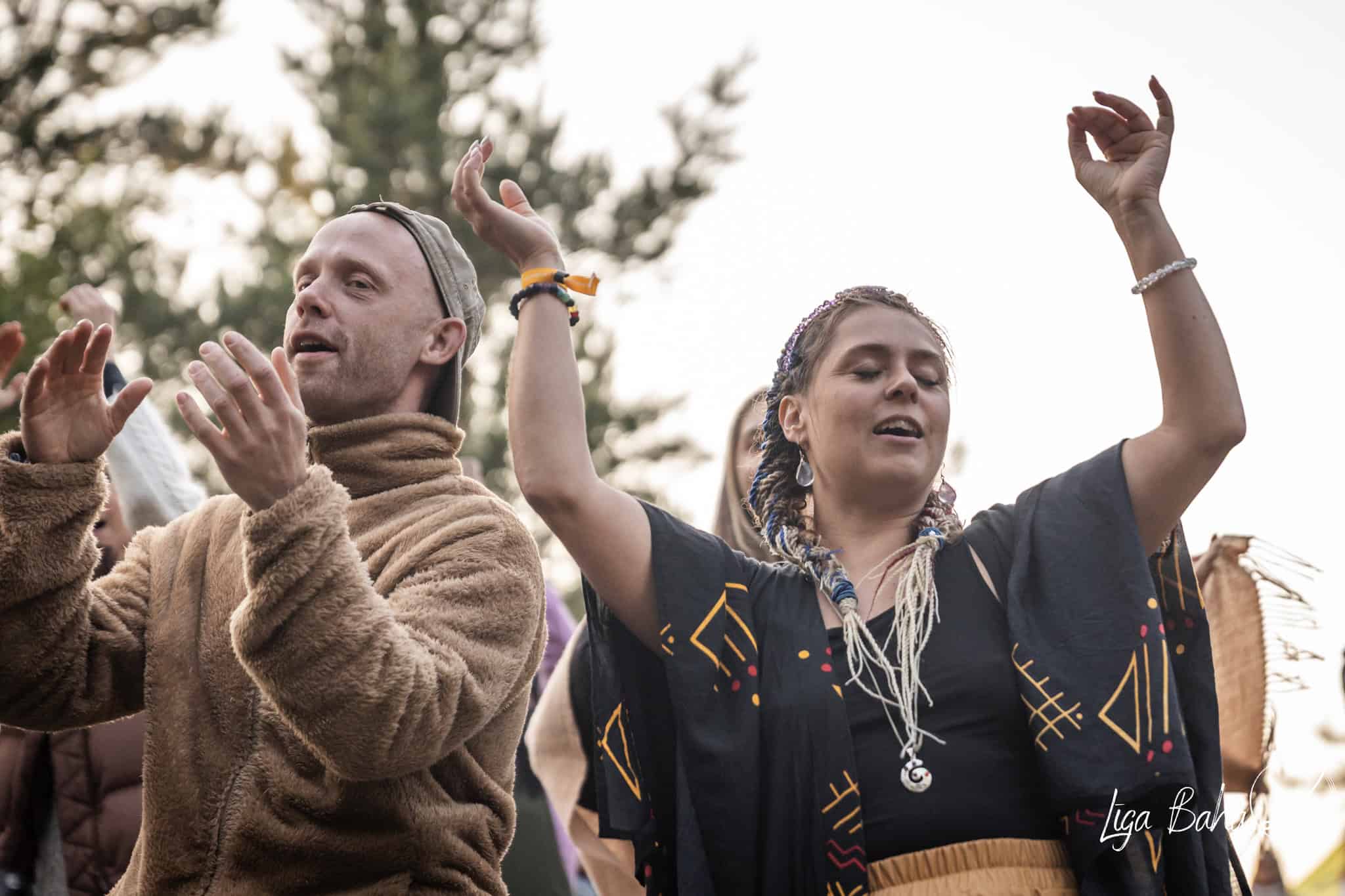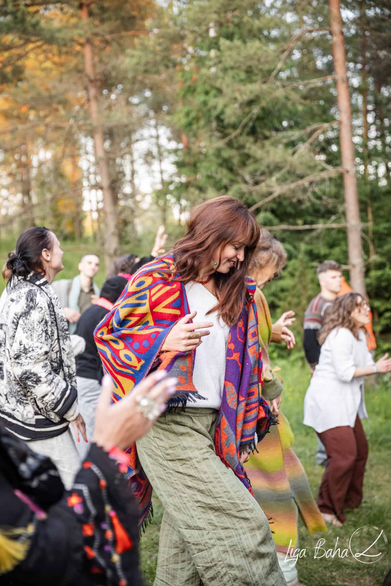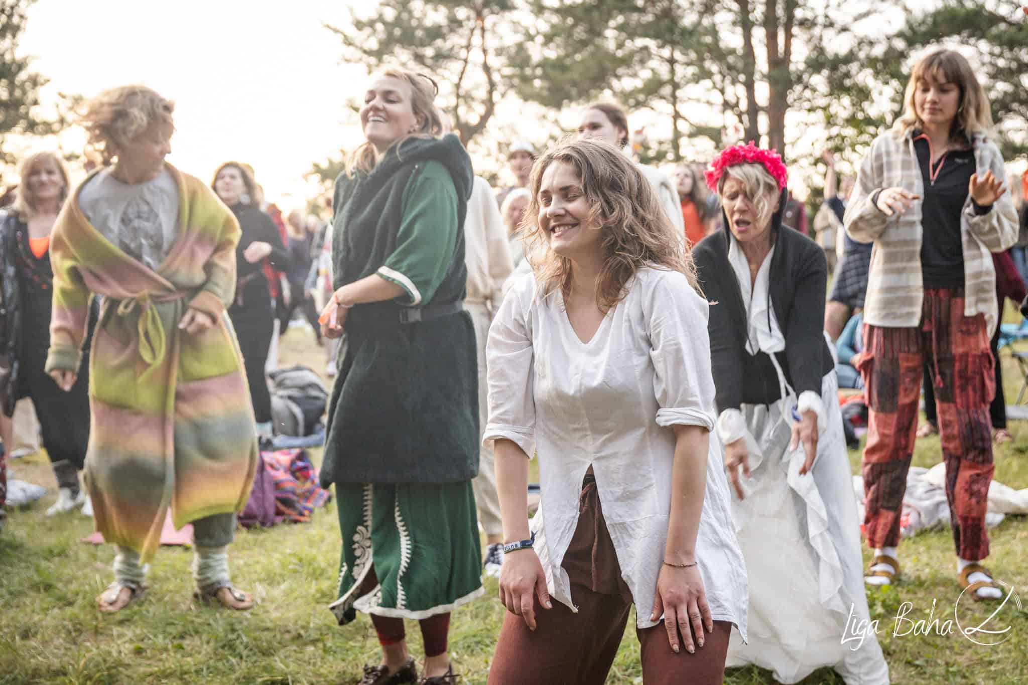 Ekstātiskās dejas dalībnieki mūzikas plūsmā.