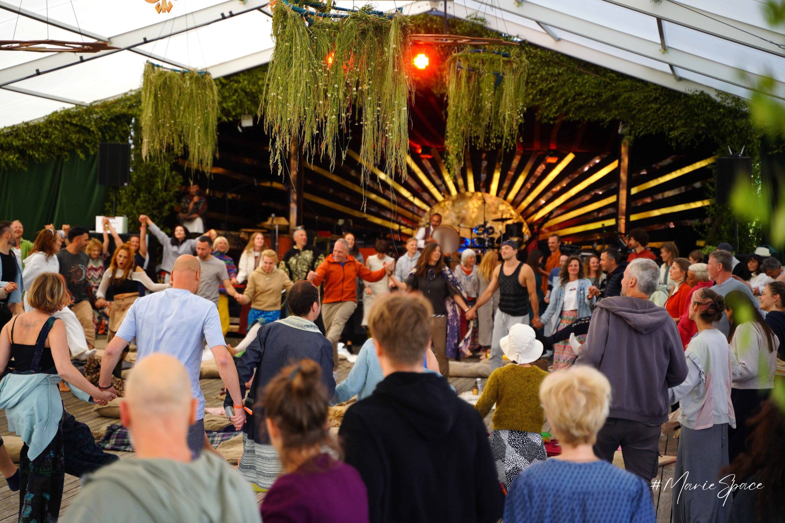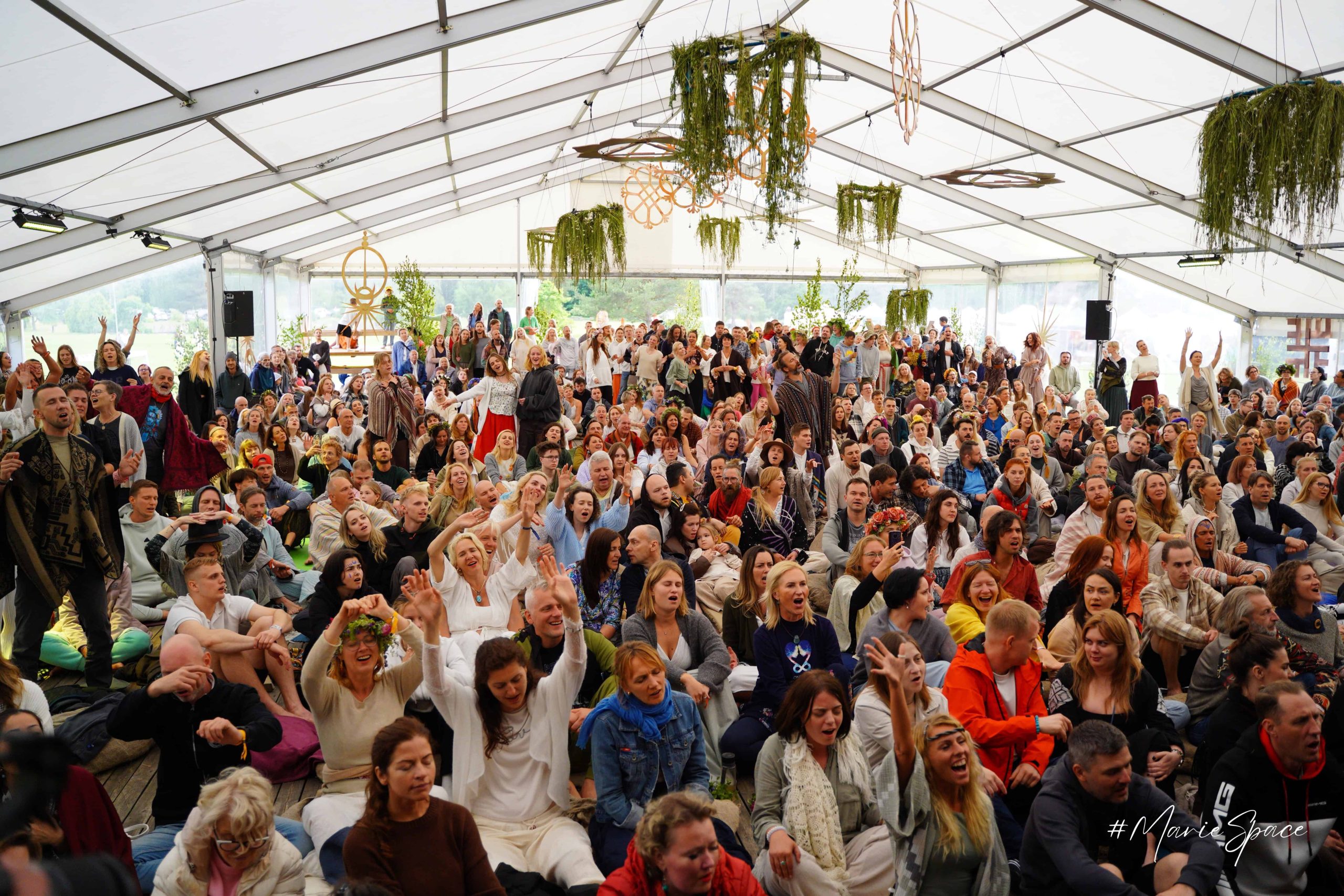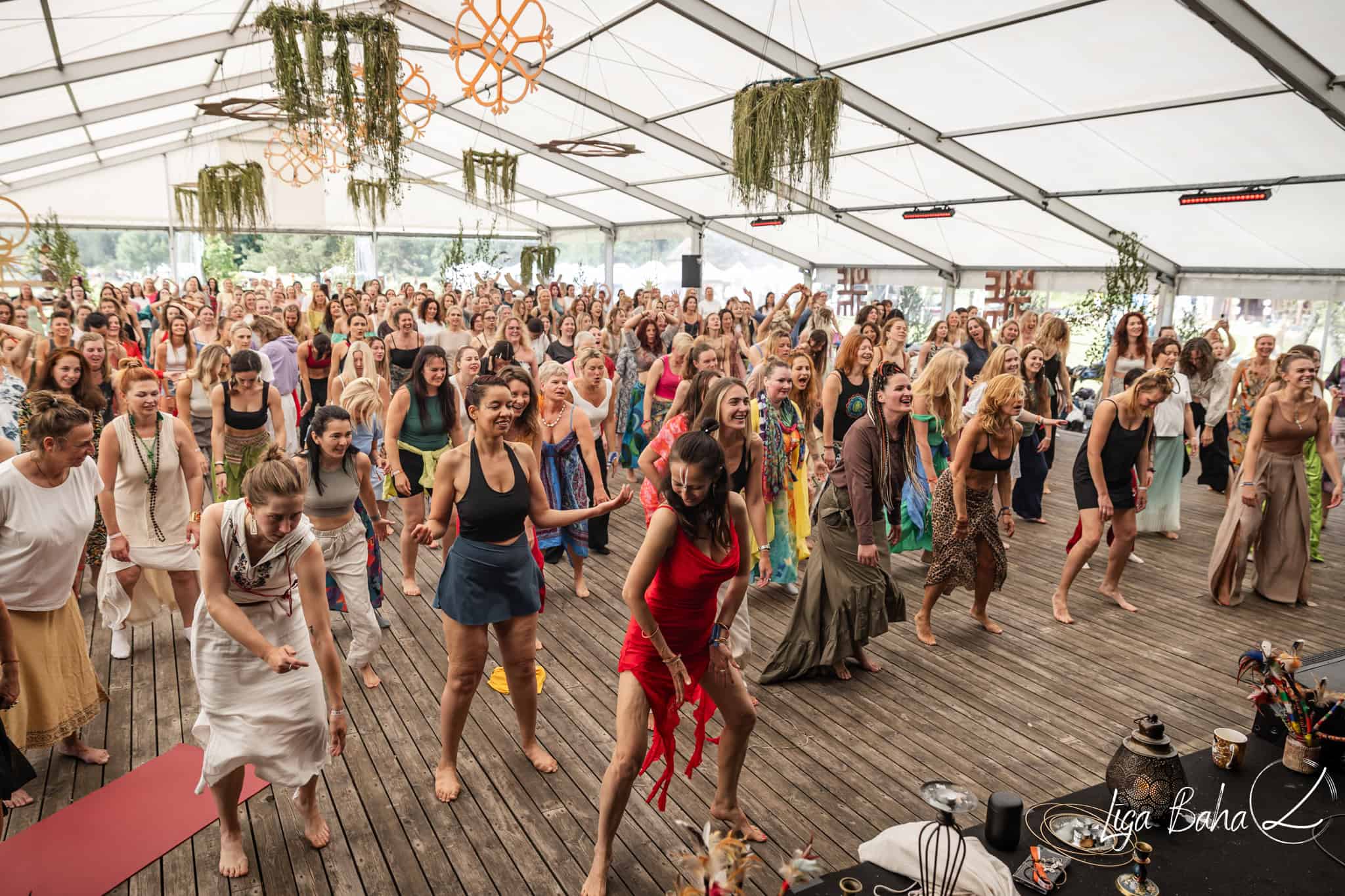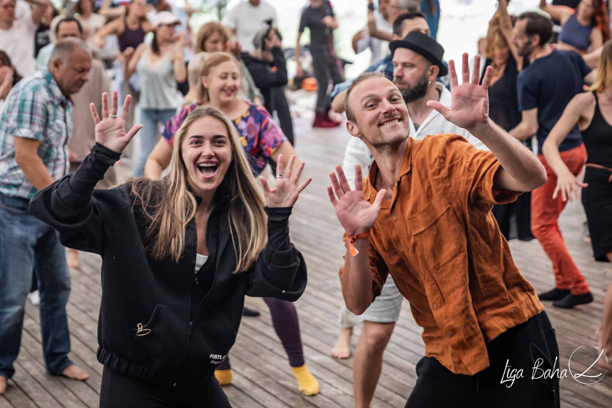 Ekstātiskās dejas dalībnieki mūzikas plūsmā.