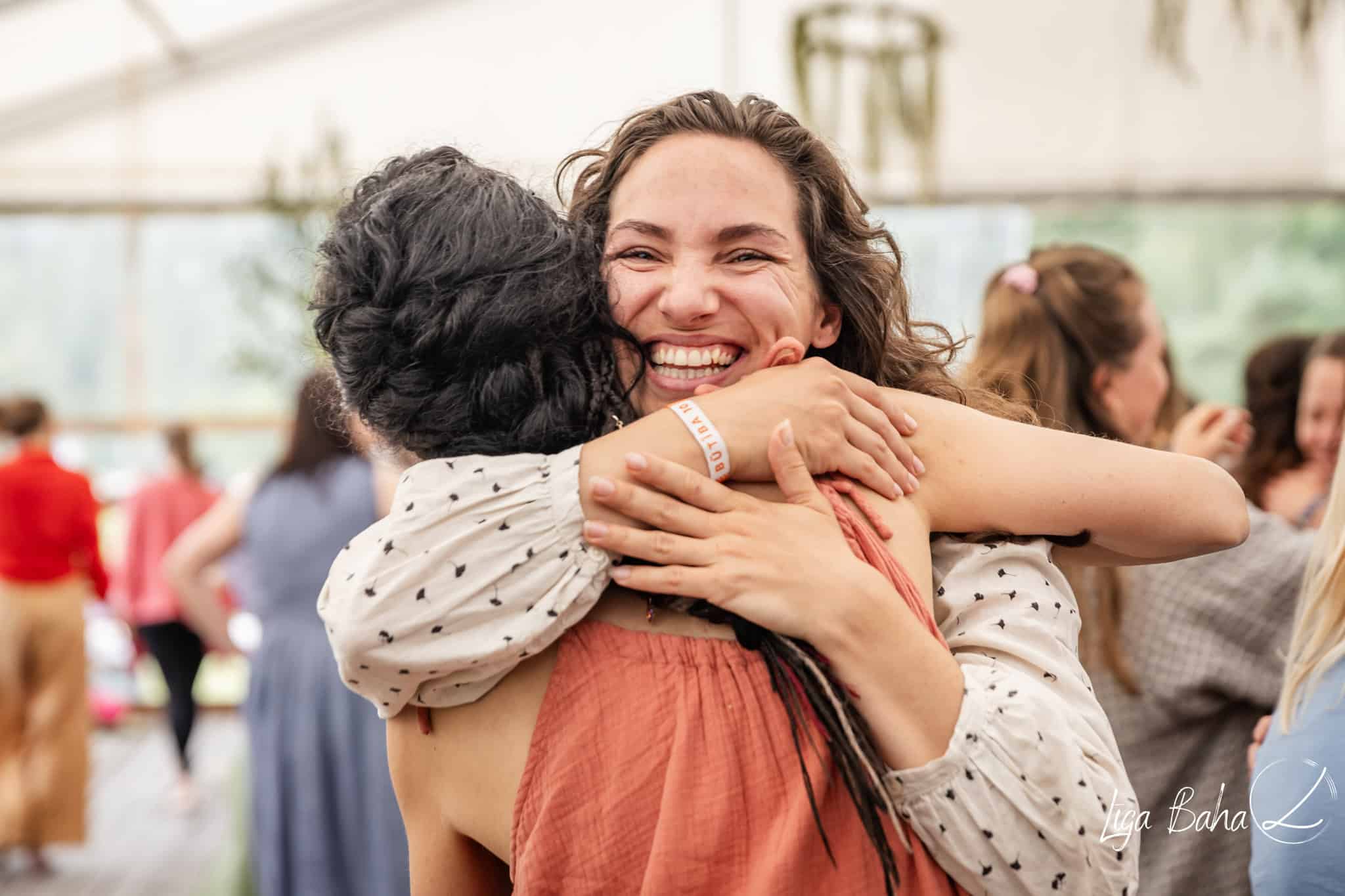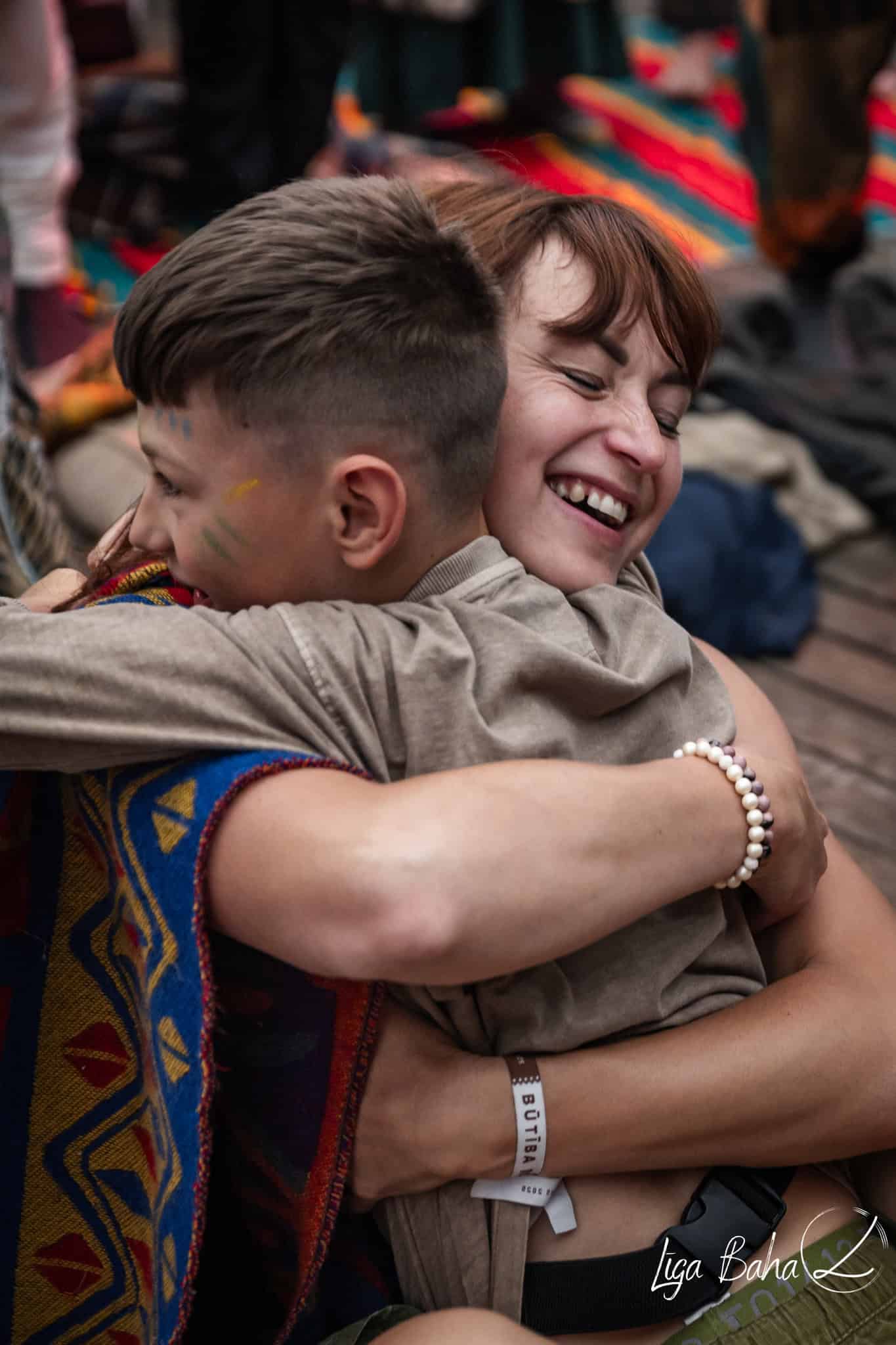 Dvēseliska satikšanās un apskāvieni festivāla laikā.