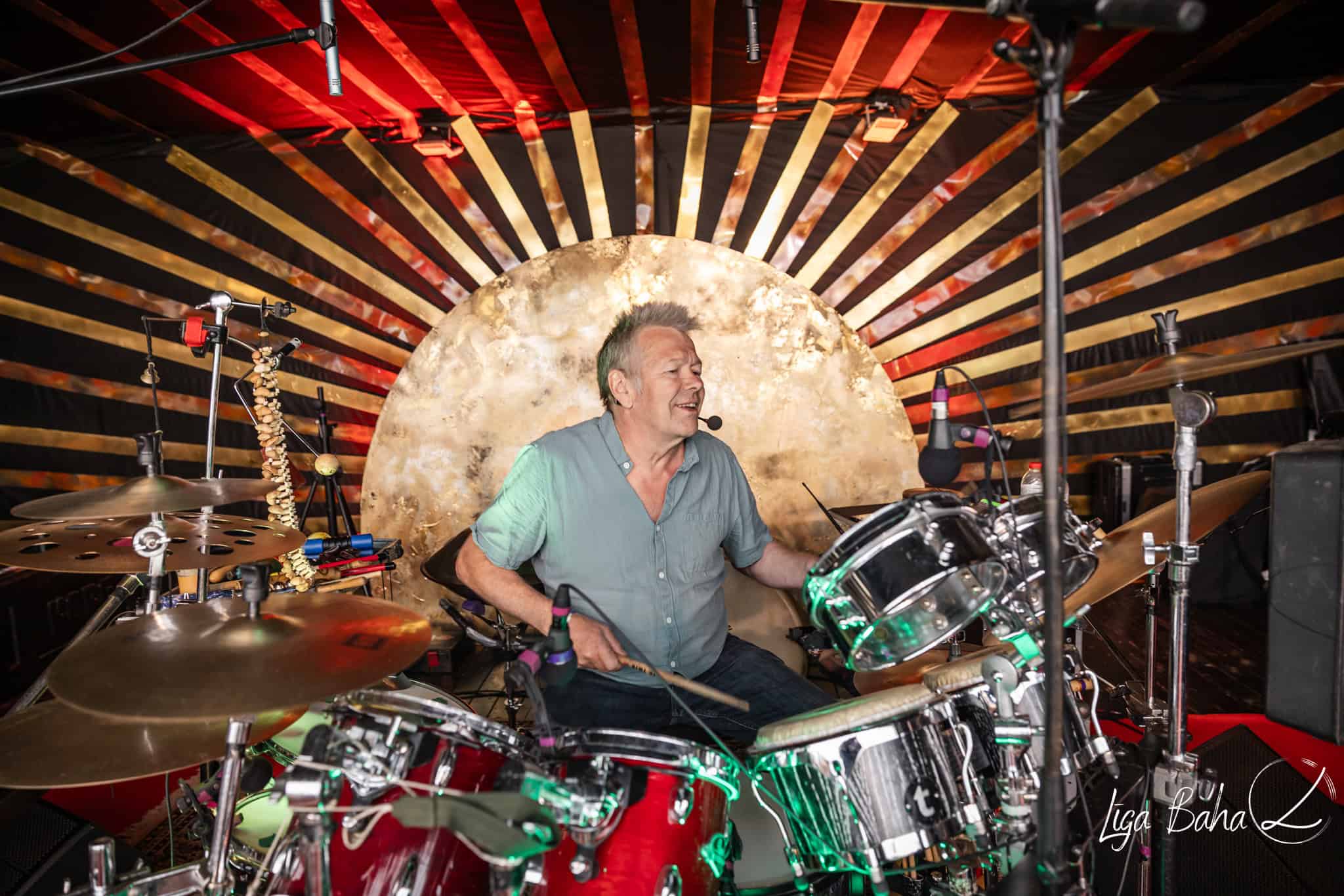 ekstātisko deju dj izmanto dzīvās mūzikas instrumentus